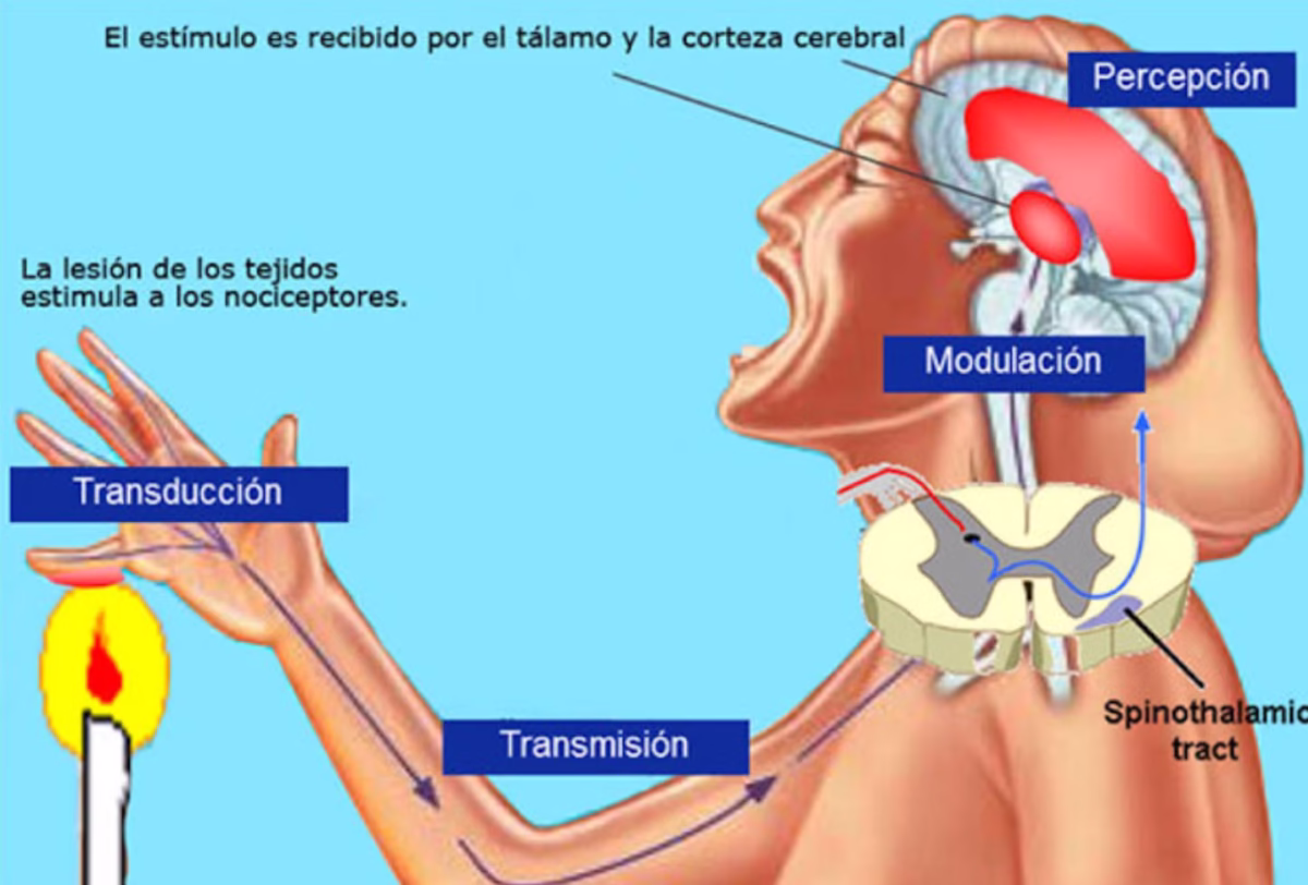 Cuando sufrimos alguna lesión en un tejido del cuerpo, se liberan diversas sustancias químicas en el área que rodea dicha estructura. Estas sustancias irritan o sensibilizan las terminaciones nerviosas que conducen el dolor enviando un mensaje hacia la médula espinal y luego al cerebro. El nervio que se vio irritado por una lesión ahora se vuelve más sensible y puede mantenerse irritado de manera crónica. Una vez irritado, este nervio también puede enviar mensajes de dolor de forma espontánea incluso cuando la irritación ya haya concluido.